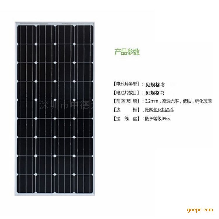 电池片:采用高效率(17.5%以上)的太阳能片封装,保证太阳能电池板发电功率充足。